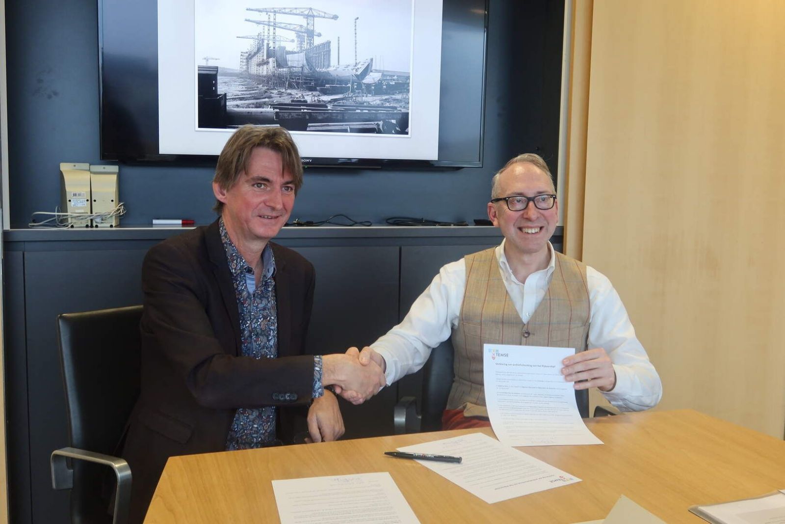 Après la faillite des chantiers navals de Temse en 1994, les très volumineuses archives de l’entreprise ont été dispersées parmi une dizaine de lieux de conservation. En 1995, les curateurs avaient donné à l’époque les deux principaux fonds aux Archives de l’État à Beveren et au service des archives communales de Temse.